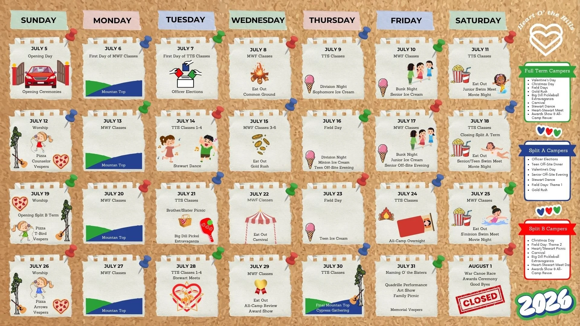 Dress: Campers encouraged to wear Sisterhood uniforms and Heart